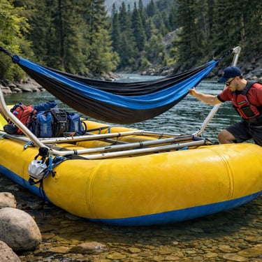 We’re not stopping at hammocks. We’re building out a full line of raft frame furniture — chairs, tables, and some seriously unique setups designed for real river life.